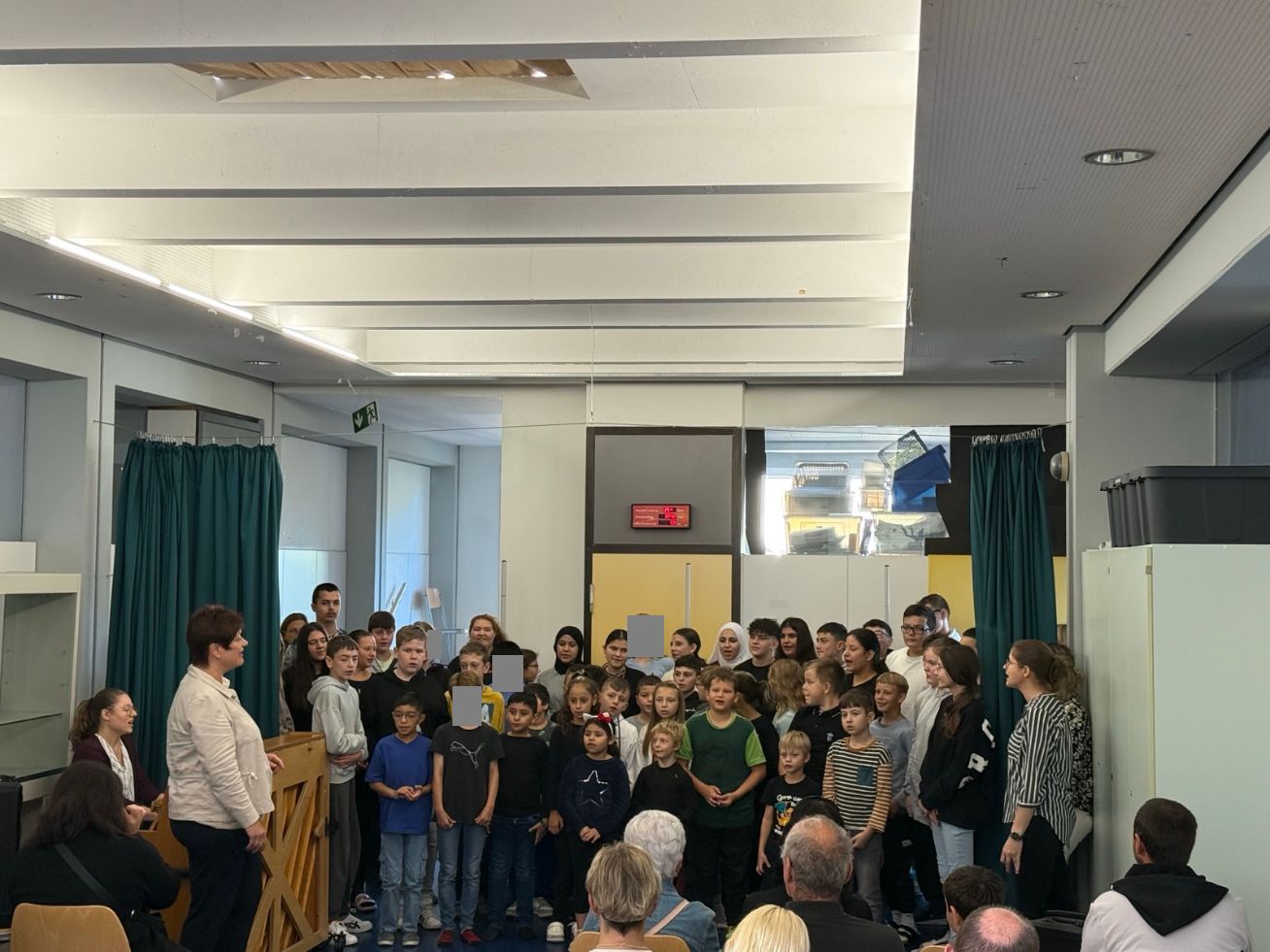Am 18.9.2025 begrüßten wir die fünf Erstklässler. Die ganze Schule nahm an der Feier teil und freute sich über die neuen Mitschüler, die mit Eltern, Schulranzen und Schultüte im Gepäck ankamen. Erstmalig gab es einen Chor unter der Leitung von Frau Sonnek, der aus allen Klassen bestand. Auch ein Theaterstück "Die kleine Raupe Nimmersatt" wurde aufgeführt. Anschließend besuchten die Erstklässler ihre erste Schulstunde in ihrer neuen Klasse G1. Die Eltern durften sich zwischenzeitlich an einem Buffet stärken und sich unterhalten. Wir wünschen euch eine tolle Schulzeit!